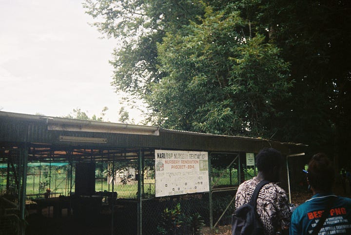 The roads vary in condition. Some are sealed and smooth, while others are dotted with potholes of various sizes and avoidability. Others are graveled, and not really any worse than the road to Jack’s Bay when the grader hasn’t visited for a while. Around where we are, there are culverts and creeks with small bridges, but not many larger rivers. On the weekend though, we tagged along on a trip to the Warangoi River, a river which was fortunately too fast-flowing for pok poks (crocodiles). The final bridge over the river, before we went down to the bank where we spent the day, was a fine feat of engineering, made of large iron panels that seemed to slot together. As we approached the middle of the bridge, however, we could see that one panel was slightly imbalanced, sticking up instead of lying flat, leaving a large gaping hole through which we could view the river rushing below us. It was a little nerve-wracking, especially as the bridge was not very wide, with minimal wiggle room to avoid the loose panel, but Taro navigated around it and we made it to our picnic spot.
